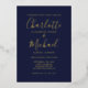 Invitation En Aluminium Élégant Signature Script Marine Blue Mariage Gold