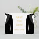 Elégant mariage gay noir et blanc Enregistrer la Date avec du texte en feuille d'or sur le devant et du texte en noir changeant sur le côté arrière de la carte