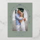 Donnez le ton à votre prochain mariage grâce à cette conception intemporelle et romantique de papier journal. Ce design évoque l'élégance et la grâce, avec un arc et un ruban de coquette délicats et dessinés à la main, jumelés à une arche florale et feuille complexe. Personnalisez avec une photo en forme d'arc La palette et l'élégante calligraphie de script se marient parfaitement avec un monogramme de mariage personnalisé, ce qui en fait vraiment unique à votre histoire d'amour. Conception et dessin à la main par © Moodthology Papery. //// Vous pouvez facilement customiser la couleur pour correspondre à votre thème mariage ou à votre palette de couleurs à l'aide de l'outil de design Zazzle. Cliquez sur "Personnaliser ce modèle", puis sélectionnez "Modifier à l'aide de l'outil de conception." \\\\\