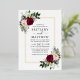 Elégante aquarelle moderne Bourgogne Floral Greenery Faire-part de mariage comprend des pivoines, des lys, des feuilles d'eucalyptus et d'autres belles verdure. Cadre à huile d'or.