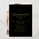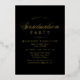 Invitations élégants de la fête de remise de diplômes présentant les détails de votre fête de remise de diplômes avec un script de feuille d'or en lettrage sur un arrière - plan noir. Les simples invitations de la fête de remise de diplômes s'inversent pour montrer la photo de fond de sang du diplômé. L'invitation de la fête de remise de diplômes de feuille d'or est parfait pour les diplômés du secondaire et du collège!
