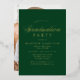 Invitations élégants de la fête de remise de diplômes présentant les détails de votre fête de remise de diplômes avec un script de feuille d'or en lettres sur un arrière - plan vert. Les simples invitations de la fête de remise de diplômes s'inversent pour montrer la photo de fond de sang du diplômé. L'invitation de la fête de remise de diplômes de feuille d'or est parfait pour les diplômés du secondaire et du collège!