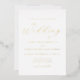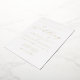 Ce faire-part de mariage simple et moderne présente du texte en feuille d'or sur un arrière - plan blanc, avec les mots "le Mariage de" dans une élégante calligraphie manuscrite. Ajoutez les noms de la mariée et du marié dans serif et les détails du mariage dans la police sans serif.
