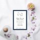 Conception simple, élégante et moderne d'invitation à la douche nuptiale en feuille d'or, avec une bordure bleu marine riche et à l'envers, vos initiales monogrammes et votre texte d'invitation. Cette conception a été créée à partir de feuilles feuillues dessinées à la main conception de couronnes pour un cadre monogramme contemporain avec une calligraphie Ampersand. Graphiquement conçu par Audrey Jeanne Roberts, artiste et designer de renommée internationale, copyright.