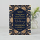 Invitation En Aluminium Elégante marine et véritable feuille d'or écriture