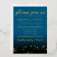 Ajoutez du style à votre faire-part de mariage avec cette simple mais élégante invitation à la feuille, qui comprend des lettres manuscrites et des blocs en papier d'aluminium avec une douche de confettis sertie sur une nuance océanique noire à éblouissante de bleu évocateur de l'arrière - plan méditerranéen. Customiser à l'avant et à l'arrière selon vos besoins. Design © W.H. Sim. Voir plus sur zazzle.com/expressionsoccasions