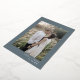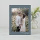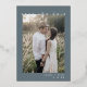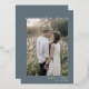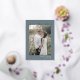 Ce mariage bleu marine en feuille d'argent, sauf la carte de date, est parfait pour un mariage moderne. Le design minimaliste présente une typographie simple mais élégante sur ardoise bleu-gris avec un air de sophistication moderne. Enregistrer la date est fait dans un luxueux papier d'argent pressé. Personnalisez votre enregistrement des dates avec une photo fiançailles, vos noms et votre date de mariage. Ajoutez votre site Web mariage au verso de la carte.