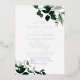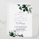 Cette carte de faire-part de mariage en feuille d'argent vert émeraude est parfaite pour un mariage boho. Le design élégant et rustique présente des feuilles d'aquarelle vert foncé moody et des eucalyptus aux tons bohèmes modernes. Doté d'un luxueux texte en feuille d'argent.