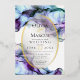 Mariage abstrait moderne dans des couleurs vives. Les tourbillons d'encre abstraits fluides apparaissent comme de la fumée ou de la vapeur intensément colorée - dans des teintes d'ultra violet violet violet, d'indigo et turquoise. Superposition de cadre doré avec remplissage fumé translucide est l'endroit où vos détails sont placés. Il s'agit d'un design abstrait unique créé pour BarefootBride™ par © WhimsicalArtwork™ Personnaliser texte, style de police, couleur et taille. Nous avons créé ce modèle pour vous faciliter la personnalisation avec vos propres informations. Il fait partie d'une suite de papeterie Mariage complète avec mariage, baby shower et autres articles de papeterie d'événements correspondants