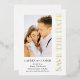 Save The Date Elegant Modern Mariage Gold Foil Invitation Cards dispose d'un arrière - plan blanc avec votre photo personnalisée. "Save The Date" est estampillé en feuille d'or ajoutant luxe et style à votre mariage enregistrer les cartes de date. Personnalisez avec votre texte en modifiant le texte dans les zones de texte fournies. Conçu pour vous par ©Evco Studio www.zazzle.com/store/evcostudio