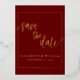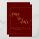 Annoncez votre date de mariage avec cette élégante carte burgundy et feuille d'or à enregistrer la date. Customisez le texte à l'avant et à l'arrière avec tous vos détails mariages.