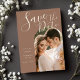 Invitation En Aluminium Enregistrer la date stylish Script Arch Frame Phot