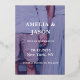 Faire-part moderne "Save the Date" avec photo de fond plein sur le devant avec une superposition translucide bleue et une véritable typographie de feuille. Customisez avec vos propres informations uniques.