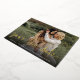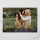 Une carte de datation moderne conçue pour accommoder votre photo de fiançailles à fond à orientation horizontale ou paysagère préférée. "Enregistrer la date" apparaît en écriture manuscrite décontractée. Personnalisez avec vos noms, la date mariage et l'emplacement du mariage en dessous en lettres blanches, et ajoutez votre site Web mariage ou des détails supplémentaires à l'arrière.