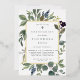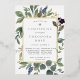 L'invitation botanique chic pour baptêmes, baptêmes ou dédications pour bébés comporte une bordure de feuilles botaniques verdoyants de sauge et de feuillage d'eucalyptus aquarelle avec garniture en feuille d'or. Personnalisez avec vos détails de cérémonie et de fête en lettres modernes sur un arrière - plan en ivoire blanc et doux.