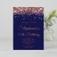 Créez pour elle votre propre invitation de célébration d'anniversaire moderne et design. L'arrière - plan bleu marine foncé de couleur solide est doté d'une bordure graphique en parties scintillant dorée rose et rose brillant. La calligraphie glamour et la couche supérieure de texte contemporain peuvent également être customisés. Fabuleux et glamour invitation de 30e anniversaire pour votre meilleur ami. Ces étincelles de luxe et ces parties scintillant sont créées avec des éléments artistiques qui s'impriment comme une photo. Vous pouvez modifier la couleur de l'arrière - plan.