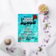 invitation cool pour une fête au piscine pour les anniversaires et autres événements, avec un fond de couleur d'eau.