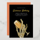 Héberger un enfant adulte seulement Halloween bash? Invitations amis avec ces invitations éffrayantes chic en feuille d'or avec une main squelettique levant une coupe de champagne pour un toast. Personnalisez avec les détails de votre fête d'anniversaire d'Halloween.