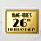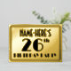 Le recto de cette invitation en feuille d'aluminium pour une fête d'anniversaire de vingt-six ans inspirée des Roaring Twenties comporte un nom personnalisé, un grand nombre «26e» dans le style Art déco, le message «FÊTE D'ANNIVERSAIRE», et un motif de bordure composé de lignes. Le verso comporte des détails personnalisés sur l'événement, tels que la date, l'heure, le lieu et toute autre information qui pourrait être importante. Des invitations élégantes et luxueuses comme celles-ci peuvent être utilisées pour inviter des invités à une fête d'anniversaire organisée pour célébrer les 26 ans de quelqu'un. [~Z0000592]