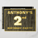 Le devant de cette carte d'invitation en feuille métallisée pour une deuxième fête d'anniversaire audacieuse comporte un nom personnalisé, un grand nombre «2ème», le message «FETE D'ANNIVERSAIRE !», et une bordure, le tout en feuille métallisée. Il y a un motif d'apparence rustique mais sophistiquée, inspiré du faux grain de bois, pour l'arrière-plan du devant. Le verso comporte des détails personnalisés sur l'événement, tels que la date, l'heure, le lieu et toute autre information pertinente. Des invitations personnalisables comme celles-ci pourraient être utilisées pour inviter les participants à une fête d'anniversaire organisée pour célébrer le 2ème anniversaire de quelqu'un.