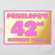 L'avant de cette carte d'invitation en papier d'aluminium pour la célébration d'un anniversaire quarante-deux audacieux et amusants comporte un nom personnalisé, un grand nombre «42ème», le message «FÊTE D'ANNIVERSAIRE!», et une bordure, le tout présentant un motif rayé rose foncé et rose clair féminin. Le verso comporte des détails personnalisés sur l'événement, tels que la date, l'heure, le lieu/lieu, et toute autre information importante. Des invitations modifiables comme celles-ci pourraient être utilisées pour inviter des participants à une fête d'anniversaire organisée pour célébrer le 42e anniversaire de quelqu'un.