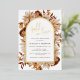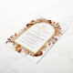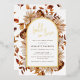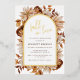 Cette élégante invitation à la douche nuptiale comprend un cadre en feuille d'or et des feuilles d'orange et de terre cuite peints à la main, des dahlias crème et beige, et de beaux roses couleur rouille sur un arrière - plan blanc. Trouvez les articles correspondants dans la collection White Autumn Romance.