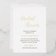 Invitations contemporaines de douche nuptiale avec un agencement simple et minimaliste avec en-tête dans un élégant script de calligraphie. L'en-tête, le nom de la mariée et la première ligne des informations du registre sont en papier or. Un design moderne qui va bien avec n'importe quel style de douche nuptiale.