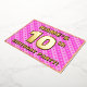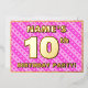 La façade de cette joyeuse carte d'invitation de fête de dixième anniversaire comporte un nom personnalisé, un grand numéro "10e", le message "FÊTE D'ANNIVERSAIRE !", et une frontière. L'arrière - plan de l'avant a un amusant motif rayé rose clair et rose foncé contenant des formes cardiaques. Le verso présente des détails personnalisés sur l'événement, tels que la date, l'heure, le lieu et toute autre information pertinente. Des invitations personnalisables comme celles-ci pourraient être une façon amusante pour les participants/invités invitations à une fête d’anniversaire ou à une réunion organisée pour célébrer le 10e anniversaire de quelqu’un. [~Z0000603]