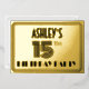 La façade de ce style des années 1920/1930 a inspiré la conception de la carte d'invitation de fête/fête de quinze ans avec un nom modifiable, un look art déco complexe inspiré numéro "15e", le message "BIRTHDAY PARTY", et une frontière multi-lignes. Le verso présente des détails personnalisés sur l'événement, tels que la date, l'heure, l'emplacement et toute autre information pertinente. Des invitations élégantes, luxueuses et personnalisées comme celles-ci pourraient être utilisées pour les participants invitations à une fête d’anniversaire organisée pour célébrer le 15e anniversaire de quelqu’un. [~Z0000594]