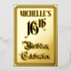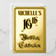 Le recto de cette fêtée ornée de seizième anniversaire/feuille de fête design d'invitation comprend le message "16th Birthday Celebration" dans un texte de style script luxueux. Il porte également un nom personnalisé. Le verso présente des détails personnalisés sur l'événement, tels que la date, l'heure, le lieu/lieu et toute autre information importante. Des invitations personnalisées, luxueuses et sophistiquées comme celles-ci pourraient être utilisées pour les invités invitations à une fête d’anniversaire ou à une fête qui se tient pour célébrer le seizième anniversaire de quelqu’un. [~Z0000596]