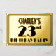 L'avant de cette invitation à fêter son vingt-troisième anniversaire de style années 1920-1930 est ornée d'un nom personnalisé, d'un grand look art déco inspiré du numéro "23ème", du message "FÊTE D'ANNIVERSAIRE" et d'un motif frontalier composé de lignes. Le verso présente des détails personnalisés sur l'événement, tels que la date, l'heure, l'emplacement/le lieu et toute autre information qui peut être importante. Des invitations élégantes, luxueuses et customisées comme celles-ci pourraient être utilisées pour les invités invitations à une fête d’anniversaire qui se tient pour célébrer le 23e anniversaire de quelqu’un. [~Z0000592]