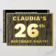 Le recto de cette carte d'invitation audacieuse de fête de vingt-sixième anniversaire comporte un nom personnalisable, un grand numéro "26e", le message "FÊTE D'ANNIVERSAIRE !", et une bordure, le tout en papier peint. Il y a un style rustique, mais élégant, de faux grains de bois inspiré motif pour l'arrière - plan de l'avant. Le verso présente des détails personnalisés sur l'événement, tels que la date, l'heure, le lieu et toute autre information importante. Des invitations modifiables comme celles-ci pourraient être utilisées pour les invités invitations à un rassemblement d’anniversaire organisé pour honorer le 26e anniversaire de quelqu’un. [~Z0000598]