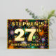 La façade de cette carte d'invitation à la fête du vingt-septième anniversaire et à la fête de fête comporte un nom modifiable, un grand numéro "27e", le message "FÊTE D'ANNIVERSAIRE !", et une frontière. L'arrière - plan du front a un motif excitant et coloré qui éclate et qui s'inspire du feu d'artifice. Le verso présente des détails personnalisés sur l'événement, tels que la date, l'heure, l'emplacement et toute autre information utile. Des invitations personnalisables comme celles-ci pourraient être une façon amusante pour les participants invitations à une fête d’anniversaire qui se tient pour célébrer le 27e anniversaire de quelqu’un. [~Z0000602]