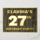 La façade de cette carte d'invitation audacieuse pour fêter ses vingt-septième ans et fêtes porte un nom personnalisé, un grand numéro "27e", le message "FÊTE D'ANNIVERSAIRE !", et une frontière, le tout en papier peint. L'arrière - plan de l'avant présente un motif rustique, mais sophistiqué, d'apparence de grain de bois inspiré. Le verso présente des détails personnalisés sur l'événement, tels que la date, l'heure, l'emplacement/le lieu et toute autre information utile. Des invitations personnalisables comme celles-ci peuvent être utilisées pour les invités invitations à une fête d’anniversaire qui se tient pour honorer le 27e anniversaire de quelqu’un. [~Z0000598]