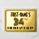 L'avant de cette élégante carte d'invitation à fêtes de trente-quatrième anniversaire de style années 1920/1930 est ornée d'un nom personnalisable, d'un style art déco complexe inspiré du numéro "34th", du message "BIRTHDAY PARTY", et d'une frontière multiligne. Le verso présente des détails personnalisés sur l'événement, tels que la date, l'heure, le lieu/lieu et toute autre information importante. Des invitations élégantes, luxueuses et personnalisables comme celles-ci pourraient être utilisées pour les invités invitations à un rassemblement d’anniversaire organisé pour célébrer le 34e anniversaire de quelqu’un. [~Z0000594]