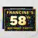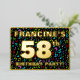 La façade de cette carte d'invitation festive et festive de cinquante-huitième anniversaire joyeux et vibrante comporte un nom personnalisé, un grand numéro "58e", le message "FÊTE D'ANNIVERSAIRE !", et une frontière. L'arrière - plan du devant présente un motif amusant et coloré de symboles musicaux et de notes. Le verso présente des détails personnalisés sur l'événement, tels que la date, l'heure, l'emplacement et toute autre information pertinente. Des invitations personnalisées comme celles-ci pourraient être une façon amusante pour les invités invitations d’un rassemblement d’anniversaire qui se tient pour célébrer le 58e anniversaire de quelqu’un. Il peut s'agir d'une soirée d'anniversaire sur le thème de la musique. [~Z0000601]