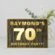 Le recto de cette carte d'invitation à fêter soixante-dixième anniversaire comporte un nom modifiable, un grand numéro "70e", le message "FÊTE D'ANNIVERSAIRE !", et une bordure, le tout en papier. L'arrière - plan de l'avant est doté d'un motif rustique, mais sophistiqué, imitation grain de bois inspiré. Le verso présente des détails personnalisés sur l'événement, tels que la date, l'heure, le lieu et toute autre information importante. Des invitations customisées comme celles-ci pourraient être utilisées pour les invités/participants invitations à une réunion d’anniversaire qui se tient pour célébrer le 70e anniversaire de quelqu’un. [~Z0000598]