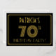 L'avant de cette invitation à fêter les soixante-dix ans dans le style des années 1920-1930 est orné d'un nom personnalisable, d'un grand style art déco inspiré du numéro "70E", du message "FÊTE D'ANNIVERSAIRE !" et d'un motif frontalier composé de lignes. Il y a un arrière - plan de couleur noire sur le devant par défaut, mais il peut être customisé à une couleur différente si désiré. Le verso présente des détails personnalisés sur l'événement, tels que la date, l'heure, l'emplacement et toute autre information pertinente. Des invitations élégantes, luxueuses et modifiables comme celles-ci pourraient être utilisées pour les invités invitations à une fête d’anniversaire ou à une fête qui a lieu pour célébrer le 70e anniversaire de quelqu’un. [~Z0000590]