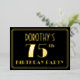 L'avant de cette invitation à fêter soixante-quinze ans d'inspiration et d'apparence vintage des Années folles comporte un nom personnalisé, un grand look art déco inspiré du numéro "75e", le message "FÊTE D'ANNIVERSAIRE", et un motif frontalier composé de lignes. L'avant a également un arrière - plan de couleur noire par défaut, mais il peut être customisé à une couleur différente si désiré. Le verso présente des détails personnalisés sur l'événement, tels que la date, l'heure, le lieu et toute autre information qui peut être importante. Des invitations luxueuses, élégantes et personnalisables comme celles-ci pourraient être utilisées pour des invités invitations à une fête d’anniversaire qui se tient pour célébrer le 75e anniversaire de quelqu’un. [~Z0000591]