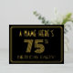 La façade de ce style des années 1920-1930 a inspiré soixante-quinzième anniversaire / invitation à la fête comporte un nom personnalisable, un grand style art déco inspiré numéro "75TH", le message "BIRTHDAY PARTY!", et un motif frontalier composé de lignes. Il y a un arrière - plan de couleur noire sur le devant par défaut, mais il peut être customisé à une couleur différente si désiré. Le verso présente des détails personnalisés sur l'événement, tels que la date, l'heure, l'emplacement et toute autre information pertinente. Des invitations luxueuses, élégantes et modifiables comme celles-ci peuvent être utilisées pour les invités invitations à une fête d’anniversaire ou à une fête qui a lieu pour honorer le 75e anniversaire de quelqu’un. [~Z0000590]