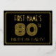 La façade de cette vintage apparition et des Années folles a inspiré quatre-vingts ans de célébration/invitation de foil de fête comporte un nom personnalisé, un grand look art déco inspiré du numéro "80TH", le message "BIRTHDAY PARTY !", et un motif frontalier composé de lignes. L'avant a également un arrière - plan de couleur noire par défaut, mais il peut être customisé à une couleur différente si désiré. Le verso présente des détails personnalisés sur l'événement, tels que la date, l'heure, l'emplacement et toute autre information pertinente. Des invitations luxueuses, élégantes et customisées comme celles-ci peuvent être utilisées pour des invités invitations à une fête d’anniversaire ou à une célébration qui a lieu pour honorer le 80e anniversaire de quelqu’un. [~Z0000590]