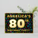 La façade de cette joyeuse carte d'invitation fêtée/fêtée de quatre-vingts ans comporte un nom personnalisé, un grand numéro "80e", le message "FÊTE D'ANNIVERSAIRE !", et une frontière. L'arrière - plan du devant présente un motif de symboles musicaux à la fois optimiste et multicolore. Le verso présente des détails personnalisés sur l'événement, tels que la date, l'heure, le lieu et toute autre information qui peut être importante. Des invitations personnalisables comme celles-ci pourraient être une façon amusante pour les participants invitations à une fête d’anniversaire ou à une réunion qui se tient pour célébrer le 80e anniversaire de quelqu’un. Il peut s'agir d'une personne spéciale si elle est un compositeur, un compositeur, un compositeur, un musicien, un chanteur ou un amoureux de la musique. [~Z0000601]