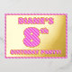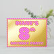 La façade de cette faire-part/carte d'invitation amusante et audacieuse de huitième anniversaire comporte un nom personnalisé, un grand numéro "8e", le message "FÊTE D'ANNIVERSAIRE !", et une bordure, toutes avec un motif féminin rose clair et rose foncé. Le verso présente des détails personnalisés sur l'événement, tels que la date, l'heure, l'emplacement/le lieu et toute autre information importante. Des invitations personnalisées comme celles-ci peuvent être utilisées pour les invités invitations à une fête d’anniversaire ou à une réunion organisée pour célébrer le 8e anniversaire de quelqu’un. [~Z0000597]