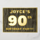 Le recto de cette carte d'invitation audacieuse pour fêter le quatre-vingt-dixième anniversaire/fête comporte un nom personnalisé, un grand numéro "90e", le message "FÊTE D'ANNIVERSAIRE !", et une frontière, le tout en papier peint. Il y a un aspect rustique, mais élégant, en faux bois d'aspect inspiré motif pour l'arrière - plan de l'avant. Le verso présente des détails personnalisés sur l'événement, tels que la date, l'heure, l'emplacement/le lieu et toute autre information pertinente. Des invitations personnalisables comme celles-ci peuvent être utilisées pour les participants invitations/invités à une réunion d’anniversaire qui se tient pour honorer le 90e anniversaire de quelqu’un. [~Z0000598]