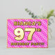 Le devant de cette joyeuse carte d'invitation à fêtes de quatre-vingt-dix-septième anniversaire comporte un nom personnalisé, un grand numéro "97e", le message "FÊTE D'ANNIVERSAIRE !", et une frontière. L'arrière - plan de l'avant est doté d'un motif à rayures rose foncé et rose clair, optimiste, aux formes cardiaques. Le verso présente des détails personnalisés sur l'événement, tels que la date, l'heure, l'emplacement/le lieu et toute autre information importante. Des invitations modifiables comme celles-ci pourraient être une façon amusante pour les participants/invités invitations à une fête d’anniversaire ou à une réunion qui a lieu pour célébrer le 97e anniversaire de quelqu’un. [~Z0000603]