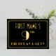 L'avant de cette invitation à fêter le neuvième anniversaire, inspirée et vintage apparence, porte un nom personnalisé, un grand style art déco inspiré du numéro "9e", le message "Fête de l'anniversaire", et un motif frontalier composé de lignes. L'arrière - plan de l'avant est coloré en noir par défaut, mais il peut être customisé à une couleur différente si désiré. Le verso présente des détails personnalisés sur l'événement, tels que la date, l'heure, le lieu et toute autre information importante. Des invitations luxueuses, élégantes et personnalisables comme celles-ci pourraient être utilisées pour les invités invitations à un rassemblement d’anniversaire qui se tient pour honorer le 9e anniversaire de quelqu’un. [~Z0000591]
