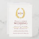Rouges bordeaux, feuille d'or et blanc dessiné à la main feuilles ovales couronnes d'invitations à des mariages d'art botanique. Un design de feuille simple encerclant votre propre design d'initiales monographiques. En rouge bordeaux classique, feuille d'or, blanc. D'autres couleurs et objets correspondants sont disponibles. © Dessin et dessin original de la feuille de gerbe ovale par Sarah Trett pour www.mylittleedenweddings.com sur Zazzle.