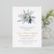 Une feuille d'or moderne croix bleu floral pampas motif d'herbe garçon première communion invitation carte. Les couleurs et le texte peuvent être personnalisés.