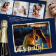 Invitation photo dorée moderne - conçu pour un fiançailles mais modifiable à toute occasion. Le recto de la carte se lit simplement "Faisons la fête !" dans le script de brosse à feuille d'or de luxe, qui est placé comme une superposition sur votre photo principale. Le dos de la carte contient vos détails de célébration personnalisés avec 3 autres photos, qui sont affichées en format carré / instagram. Les couleurs arrière - plan et texte de bleu et blanc sont modifiables - cliquez sur "modifier à l'aide de l'outil de conception" si vous voulez les modifier.