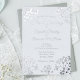 Une invitation de mariage fantaisiste et élégante avec feuille d'argent sur un simple arrière - plan bleu blanc. Le design de la feuille est une silhouette du souffle du bébé, un vieux symbole de l'amour éternel dans le langage des fleurs. Cette invitation est personnalisable.